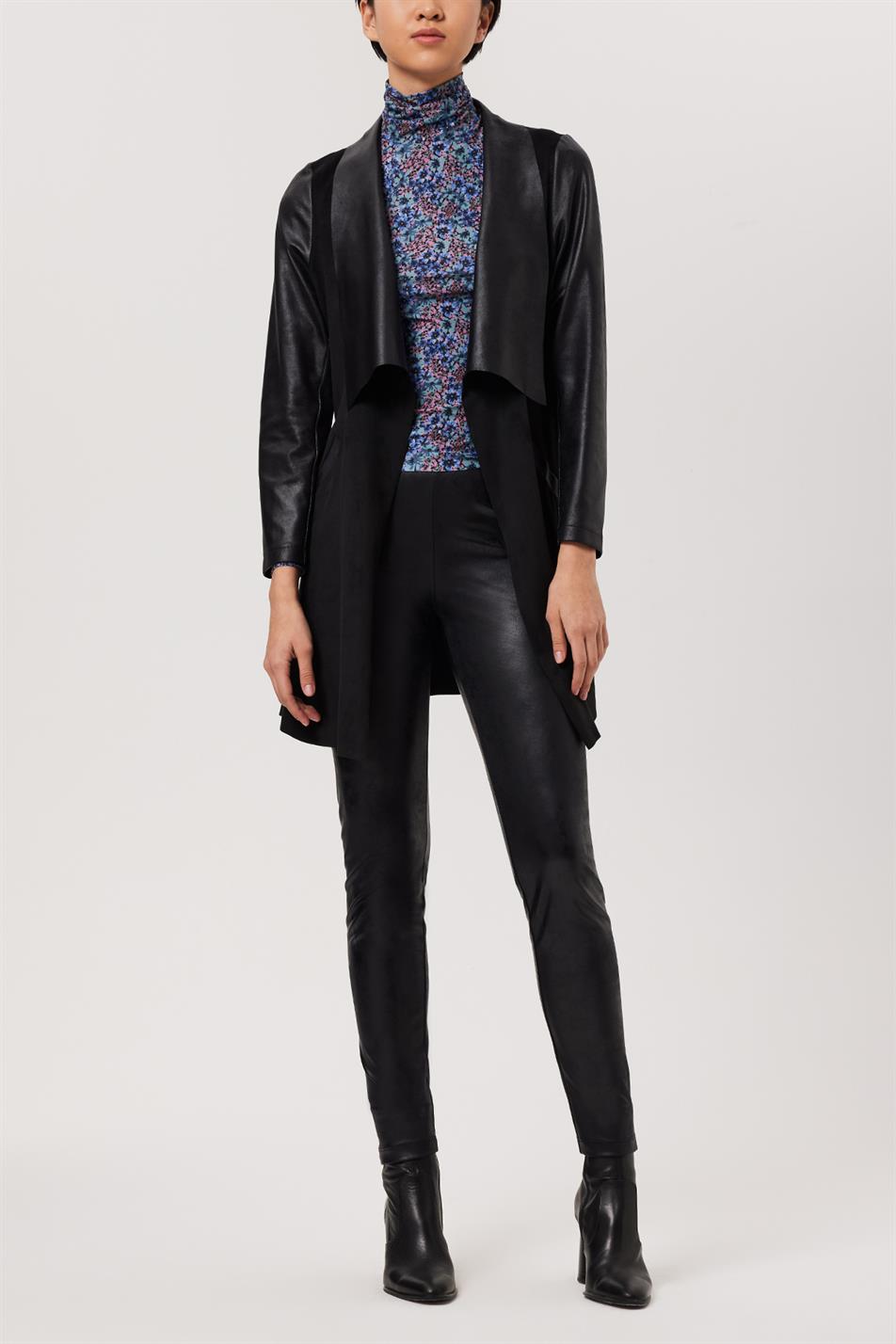 Kadın Siyah Süet Kolları Ve Yakası Deri Görünümlü Şal Yaka Cepli Ceket